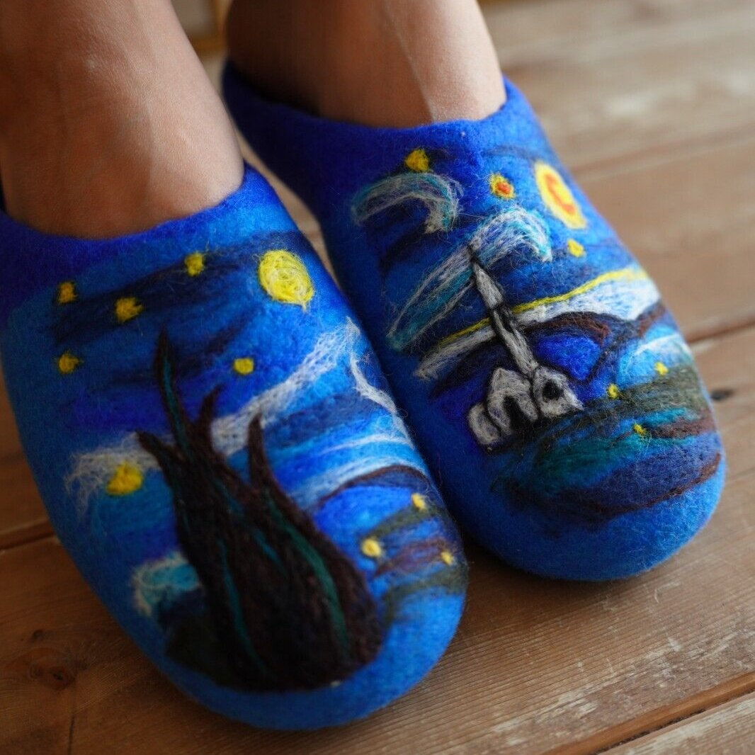 Embrace the warmth and softness of these exquisitely handmade merino wool felt slippers.