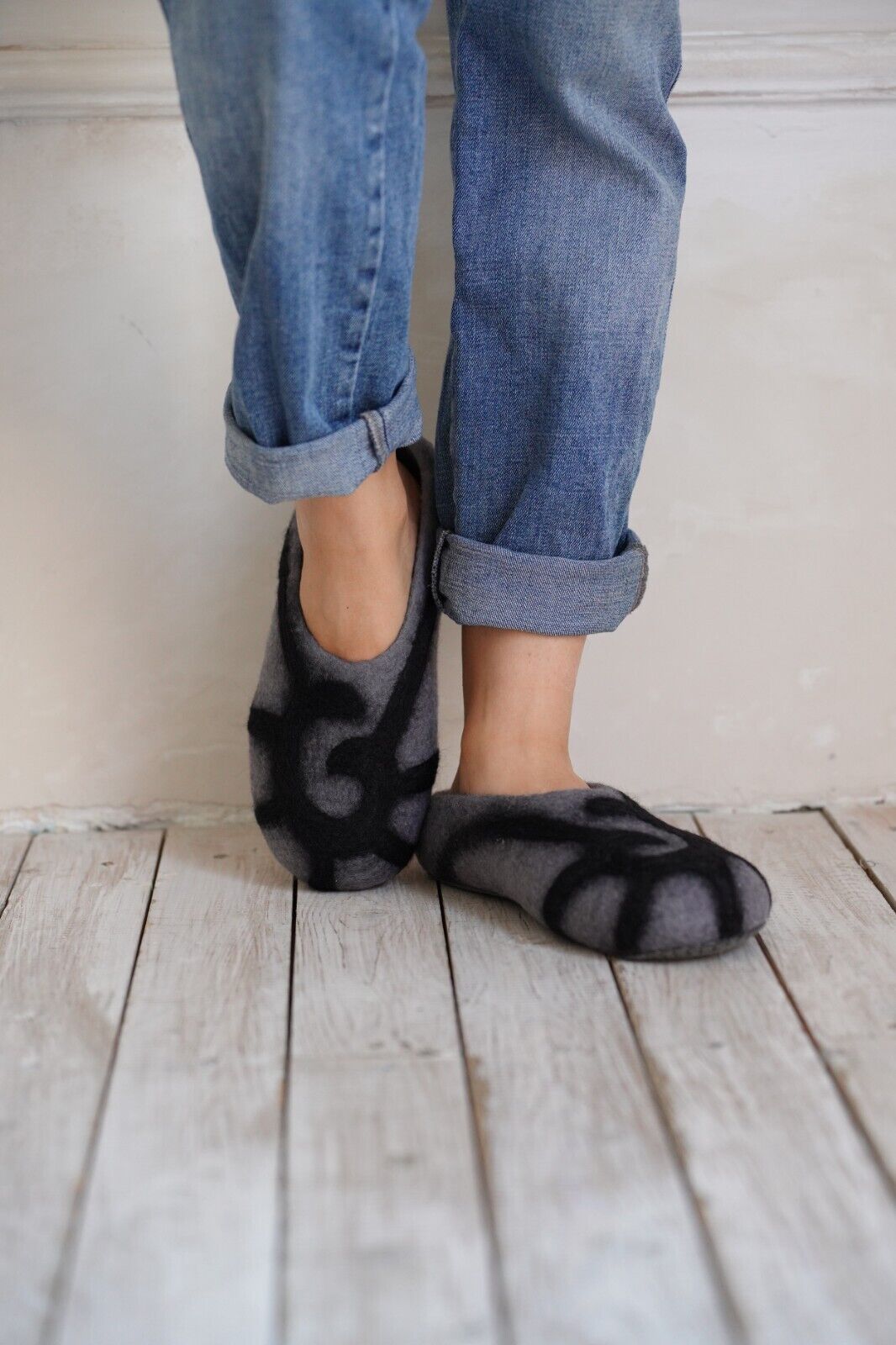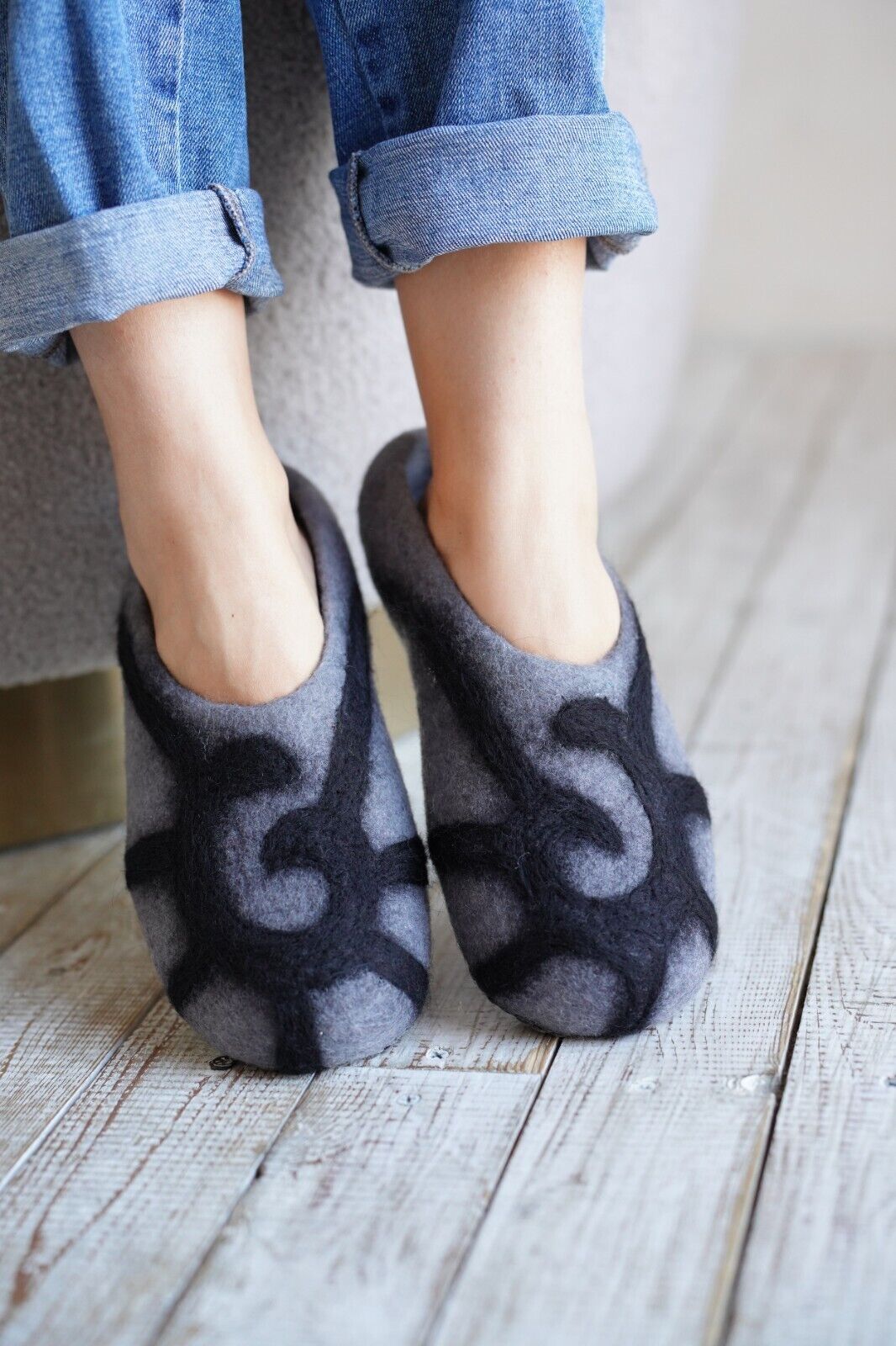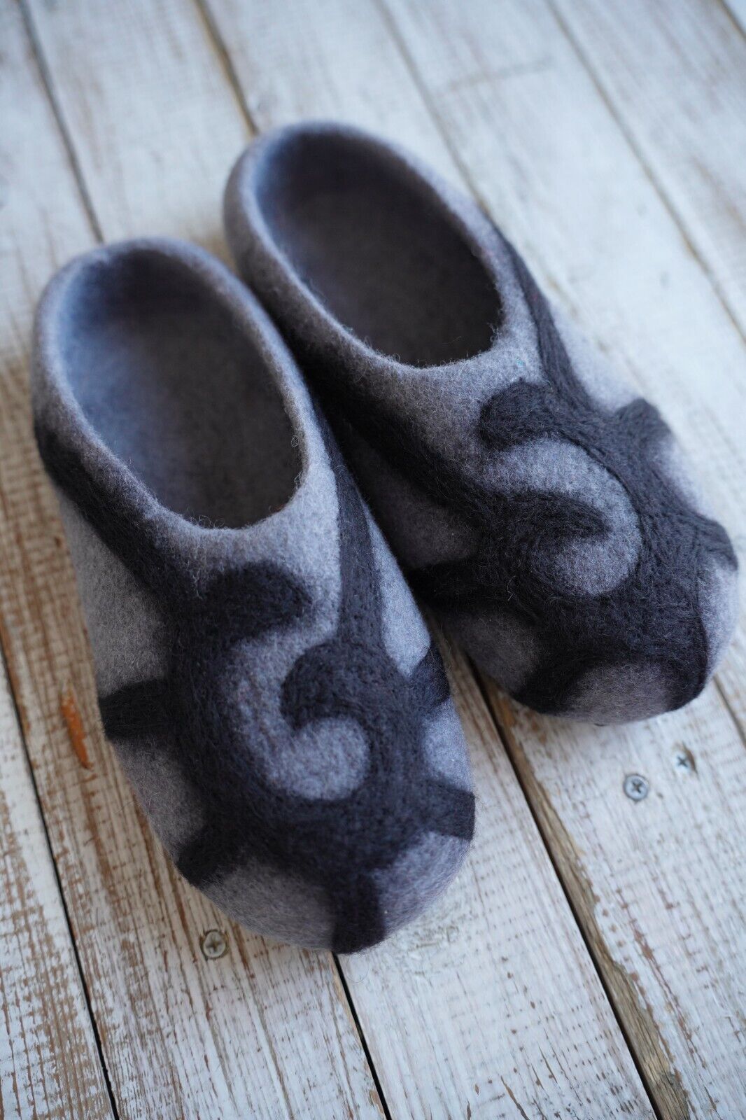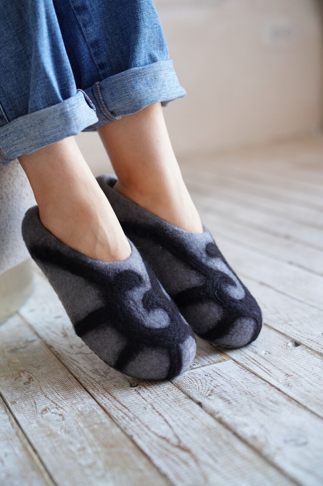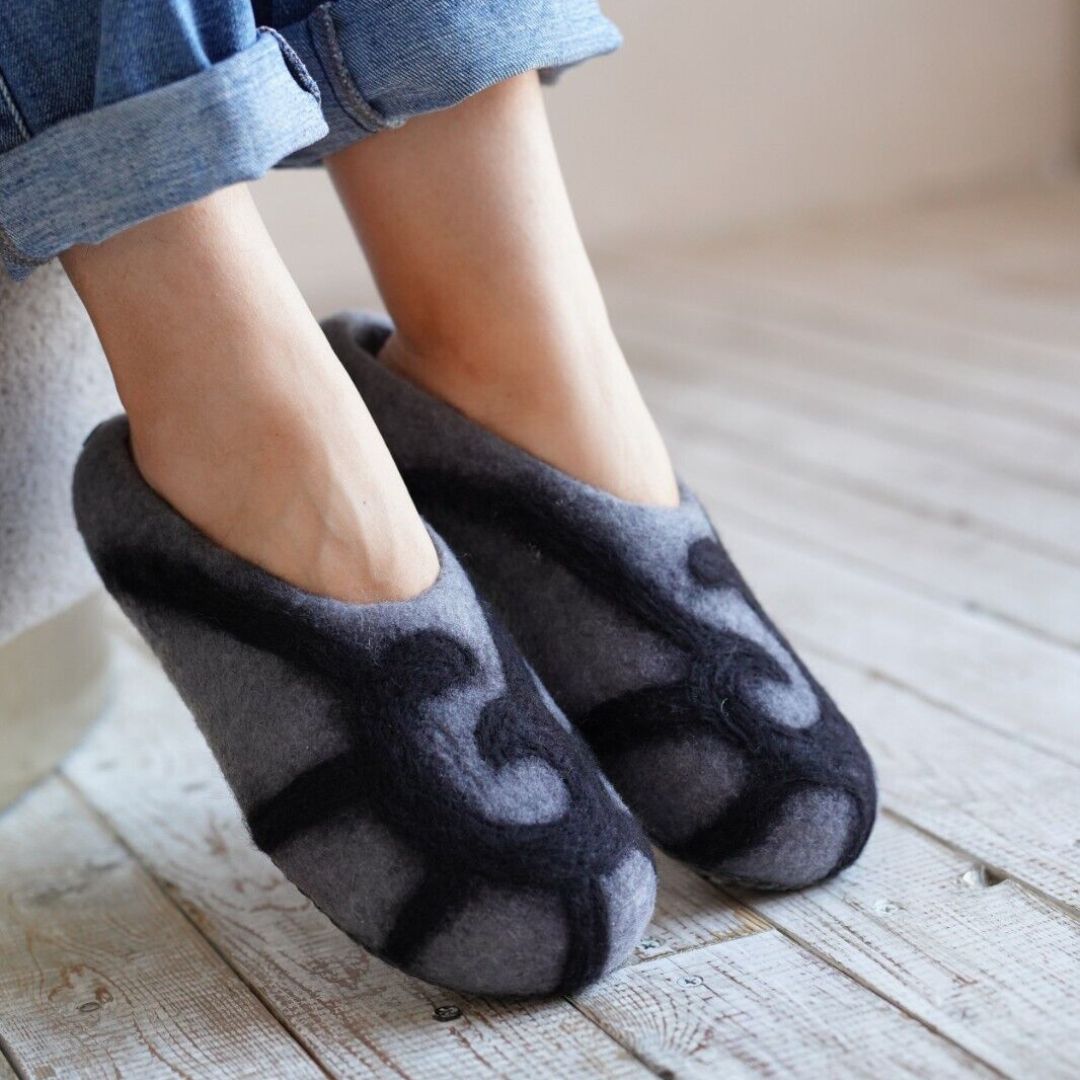Embrace the warmth and softness of these exquisitely handmade merino wool felt slippers.