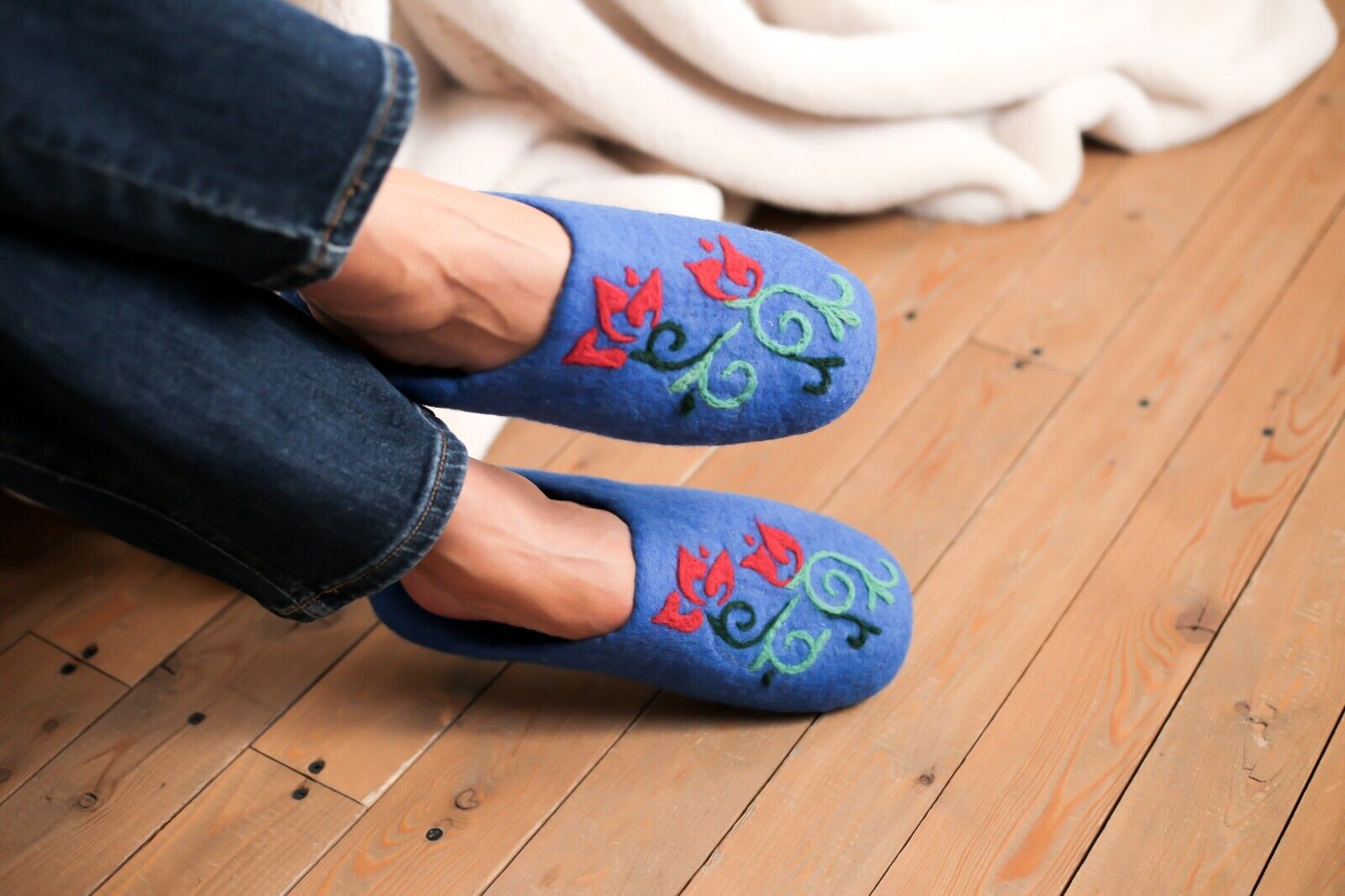 We are a collective of passionate artisans dedicated to crafting beautiful handmade slippers and wool accessories. Blending the ancient Kyrgyz tradition of wool felting with modern design, we use only natural silk and merino wool to create luxurious pieces for discerning customers.
