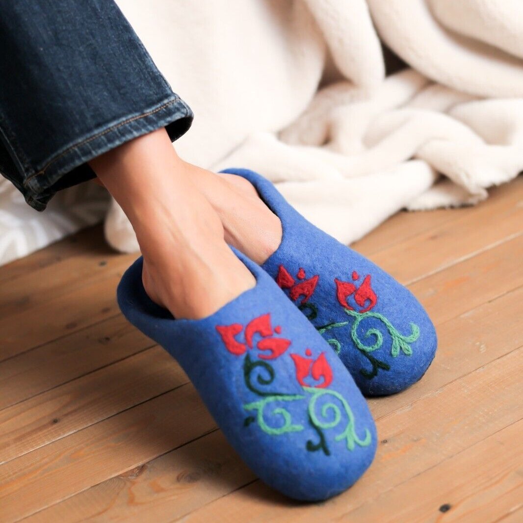 Embrace the warmth and softness of these exquisitely handmade merino wool felt slippers.