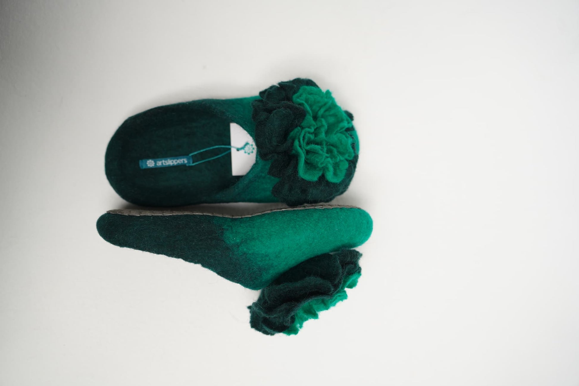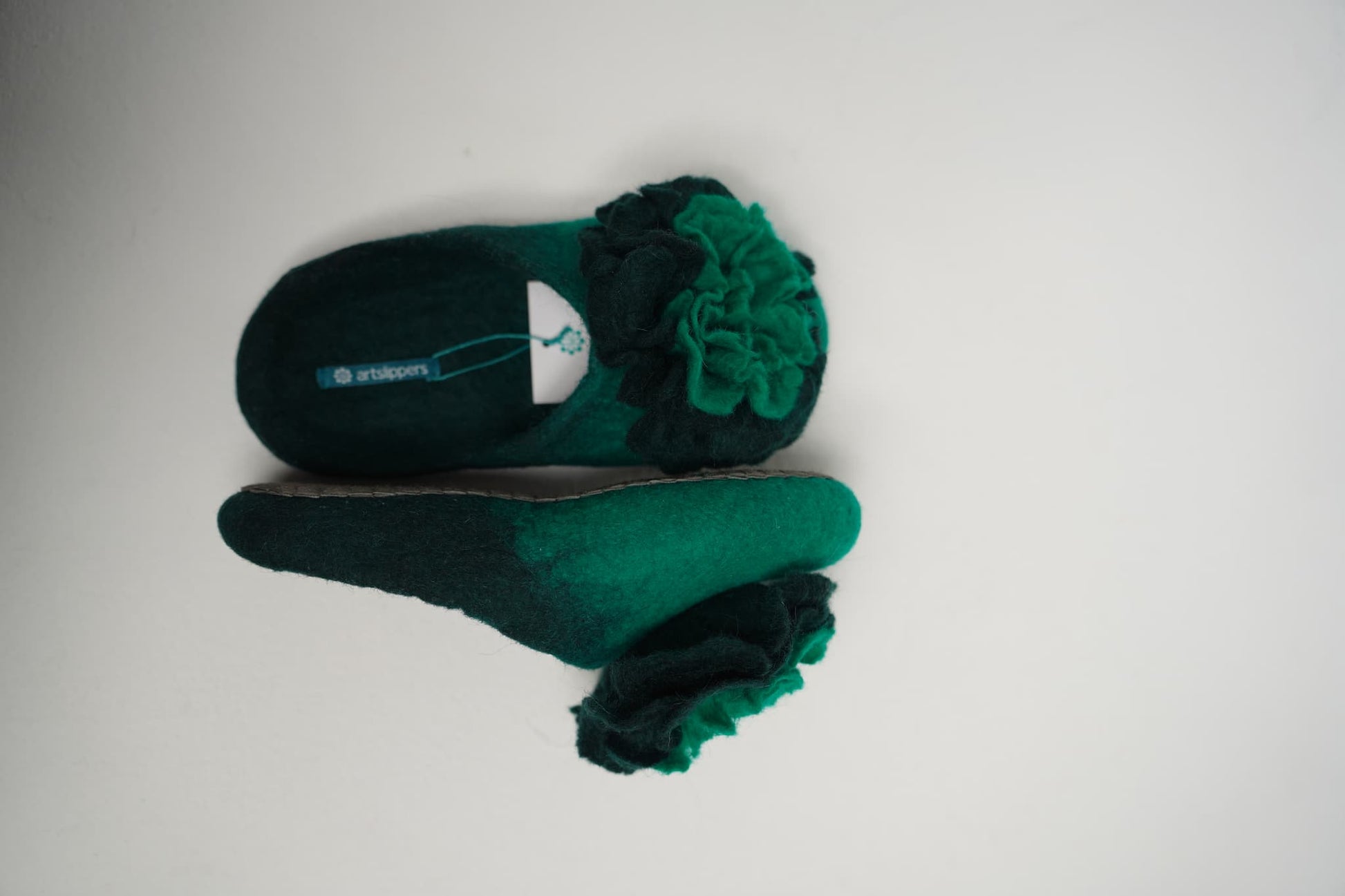 Embrace the warmth and softness of these exquisitely handmade merino wool felt slippers.