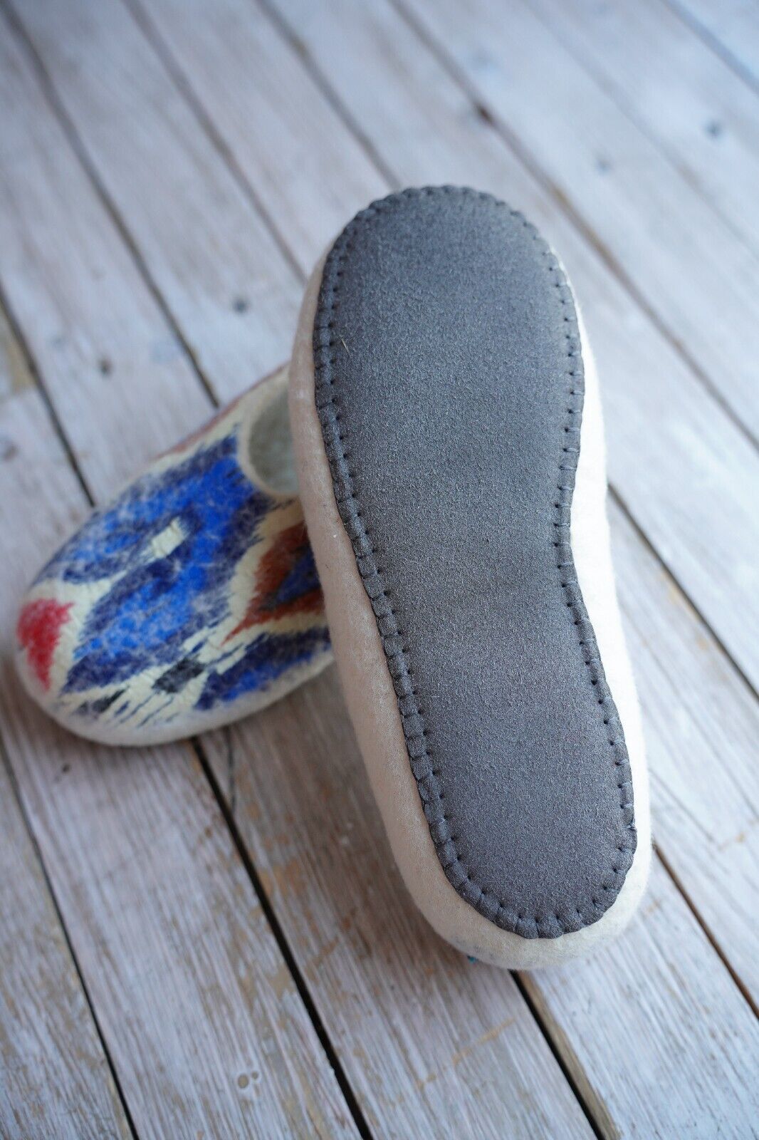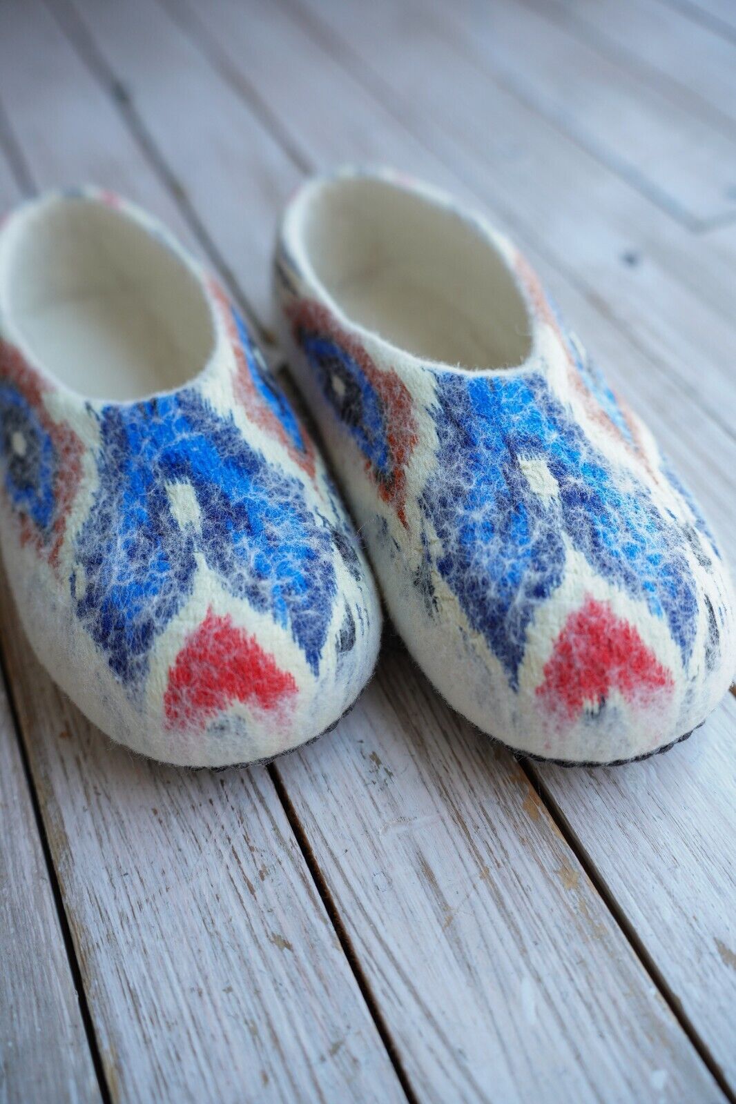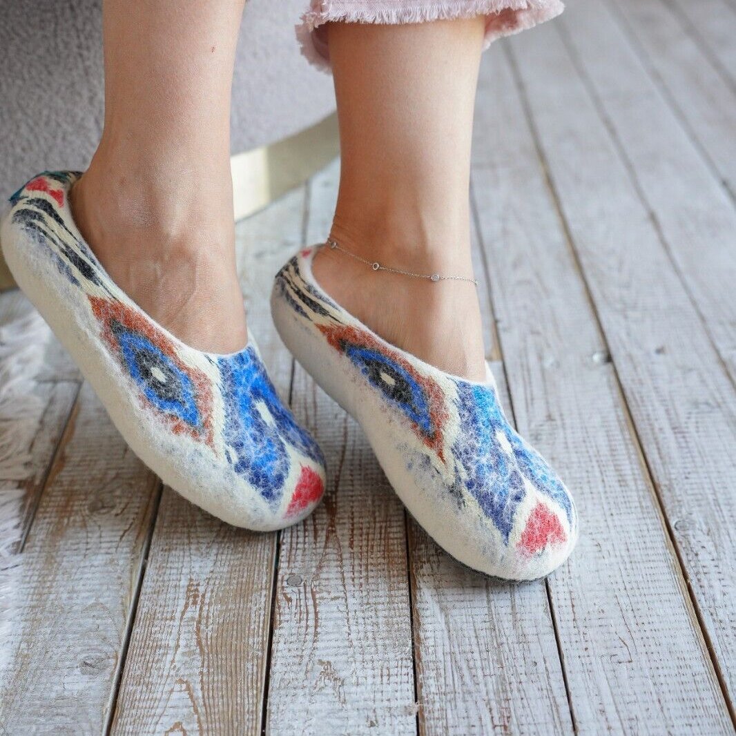 Embrace the warmth and softness of these exquisitely handmade merino wool felt slippers.