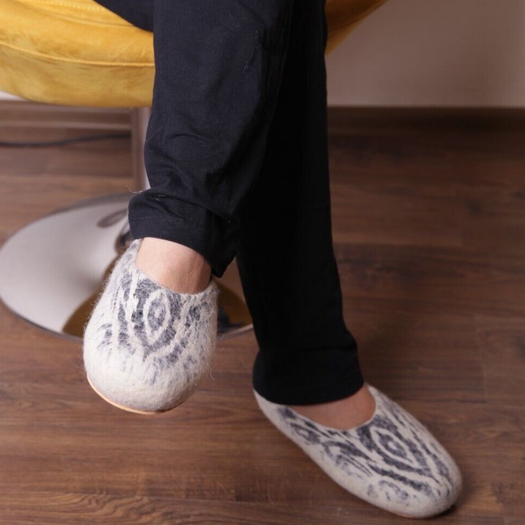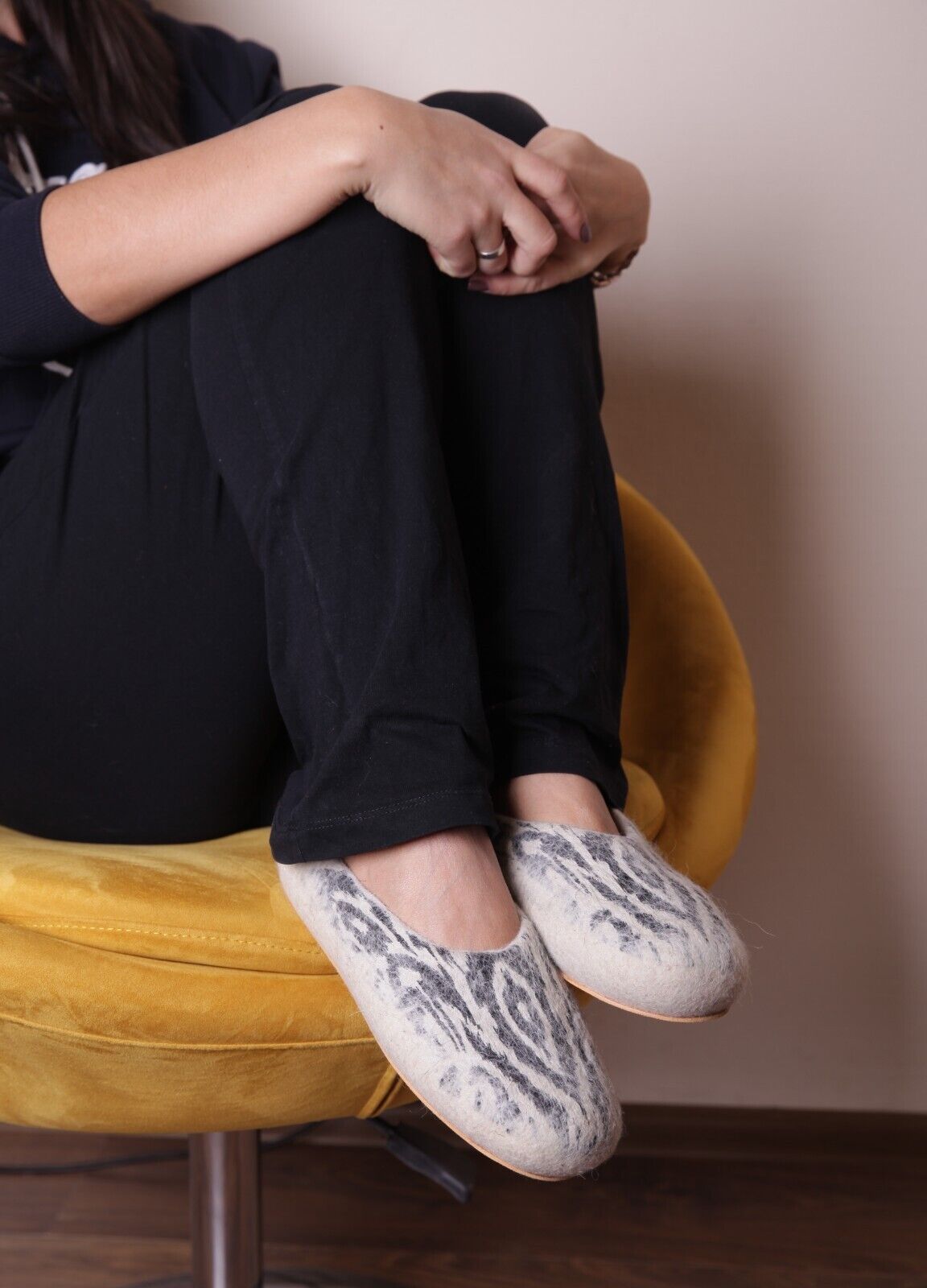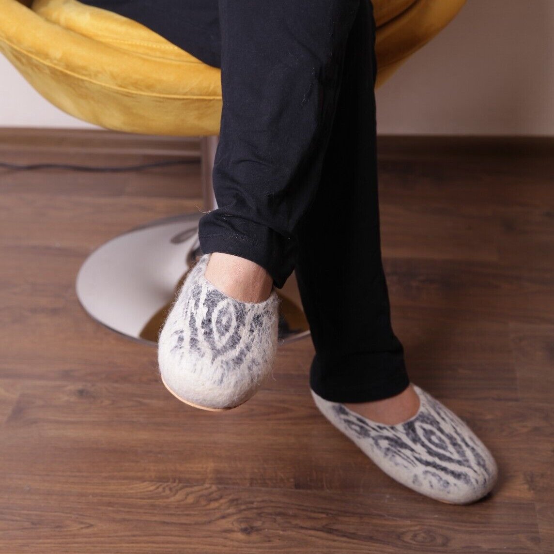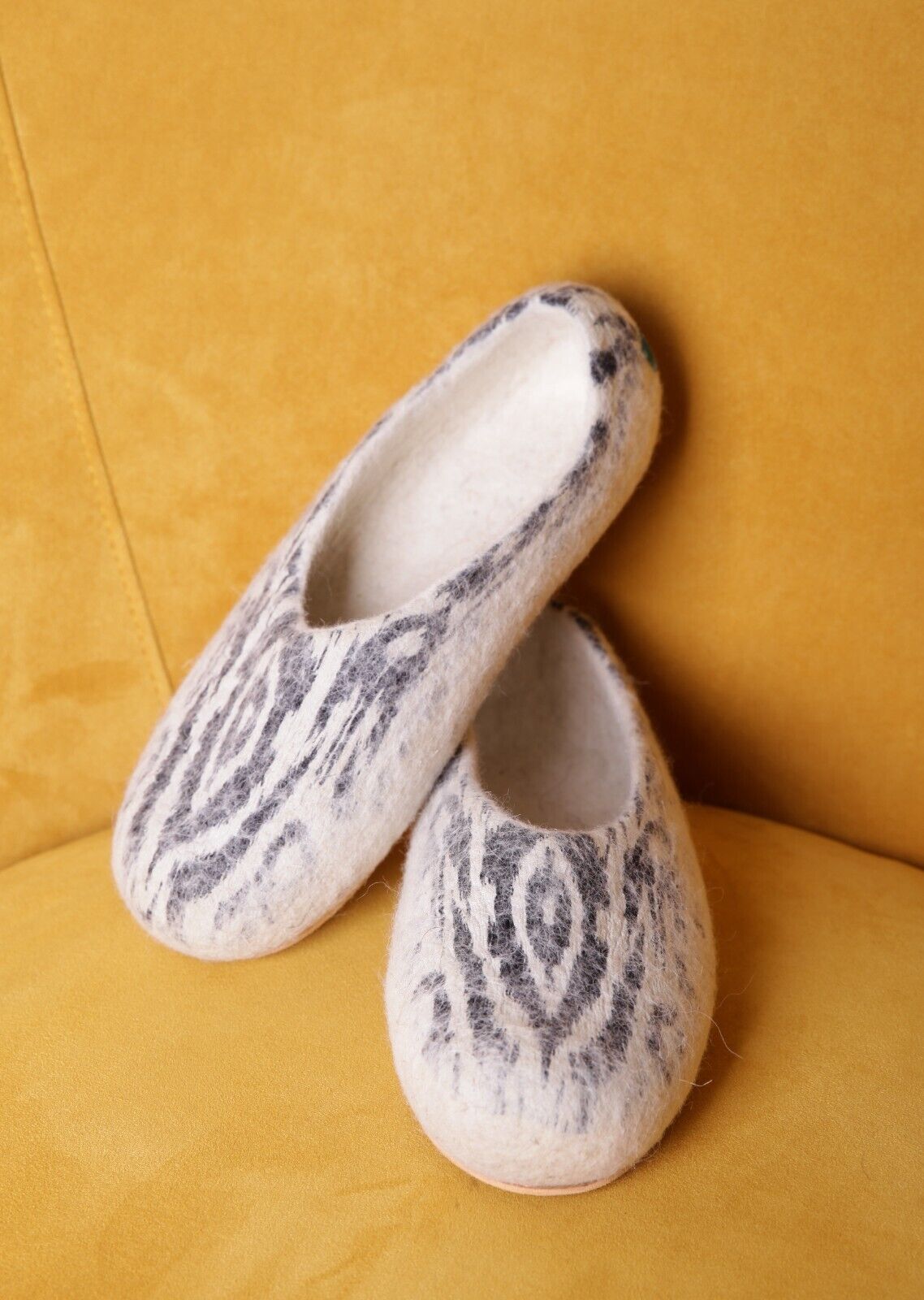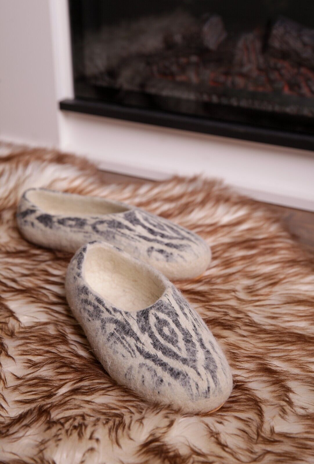 Embrace the warmth and softness of these exquisitely handmade merino wool felt slippers.