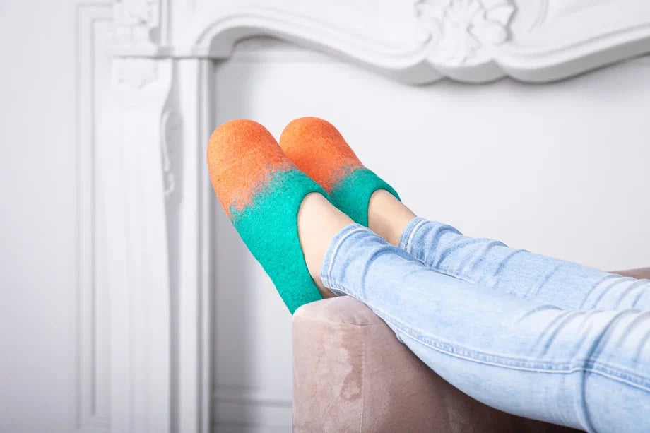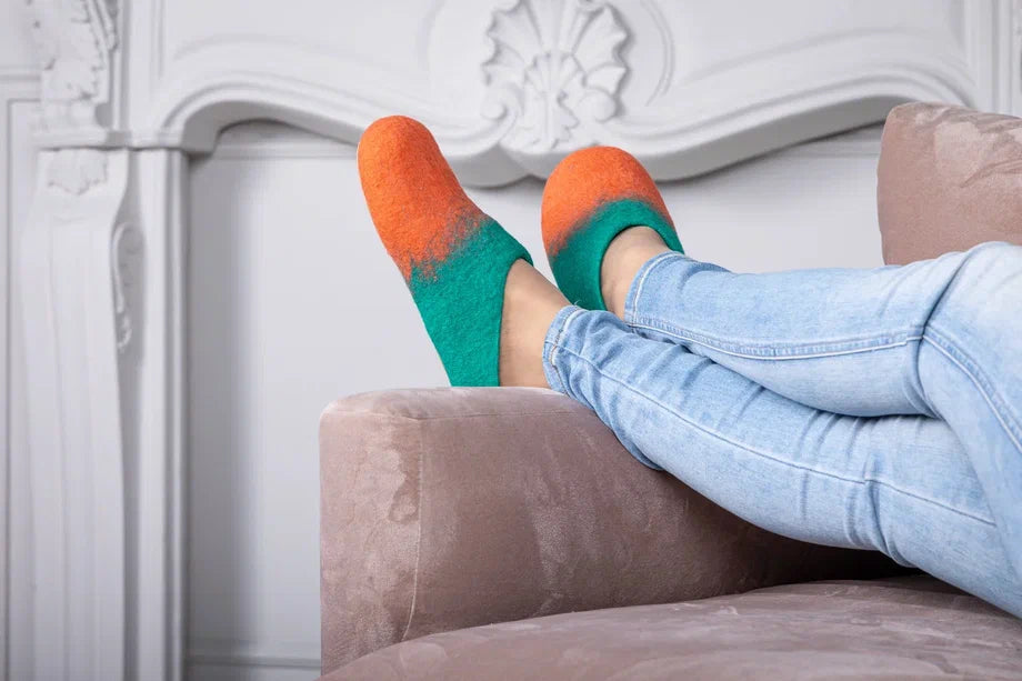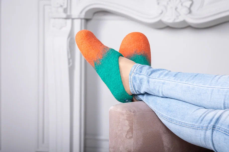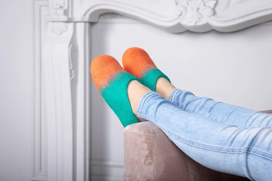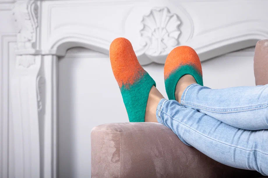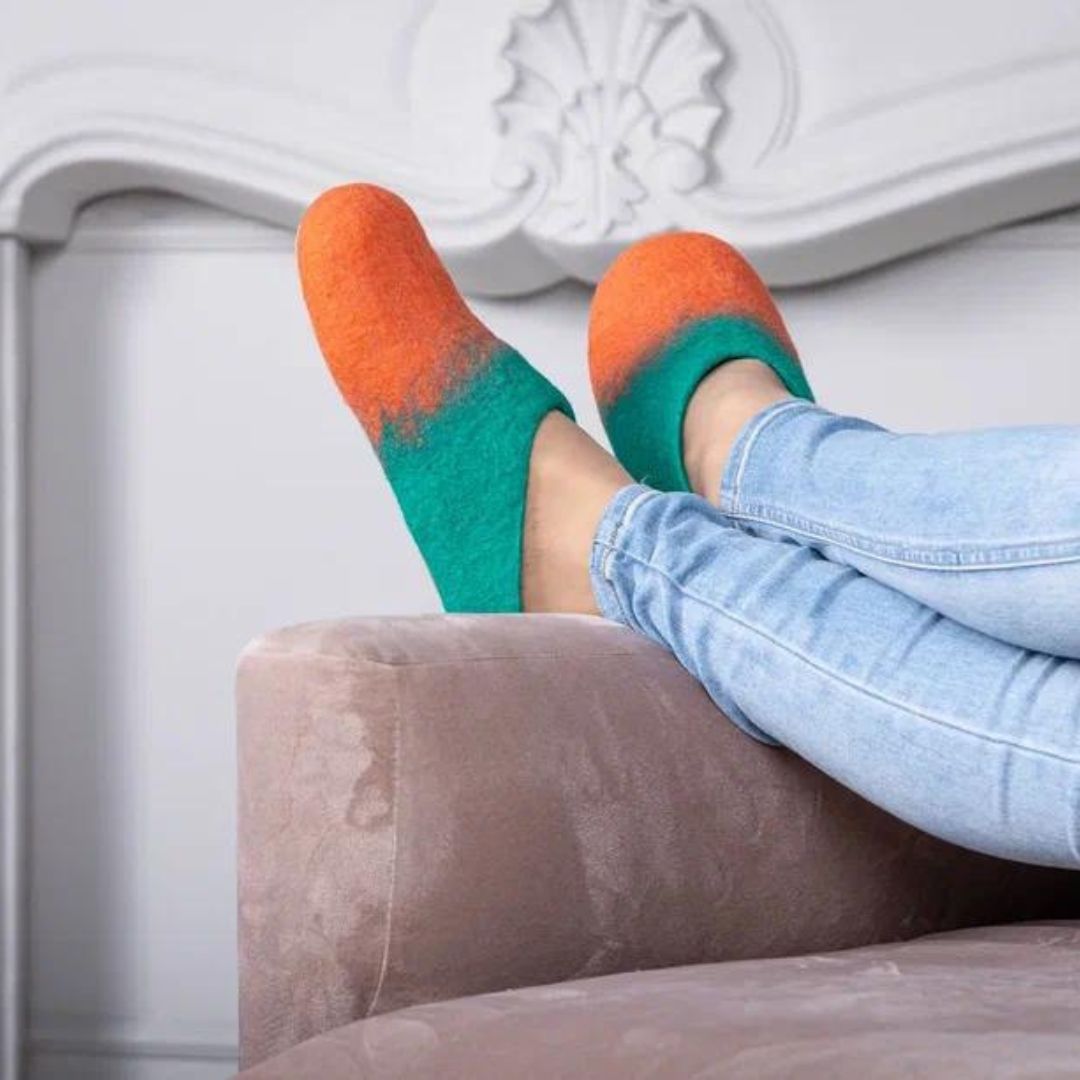 Embrace the warmth and softness of these exquisitely handmade merino wool felt slippers.