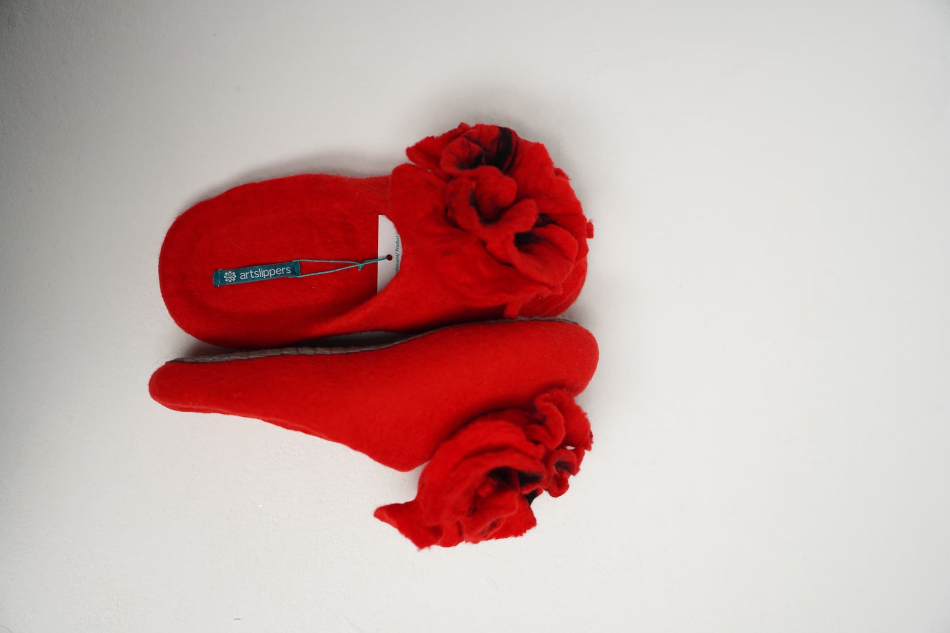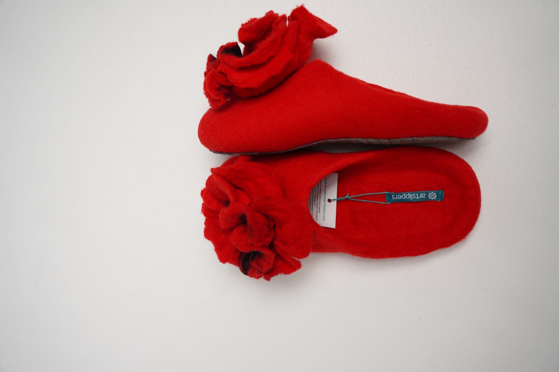 Embrace the warmth and softness of these exquisitely handmade merino wool felt slippers.