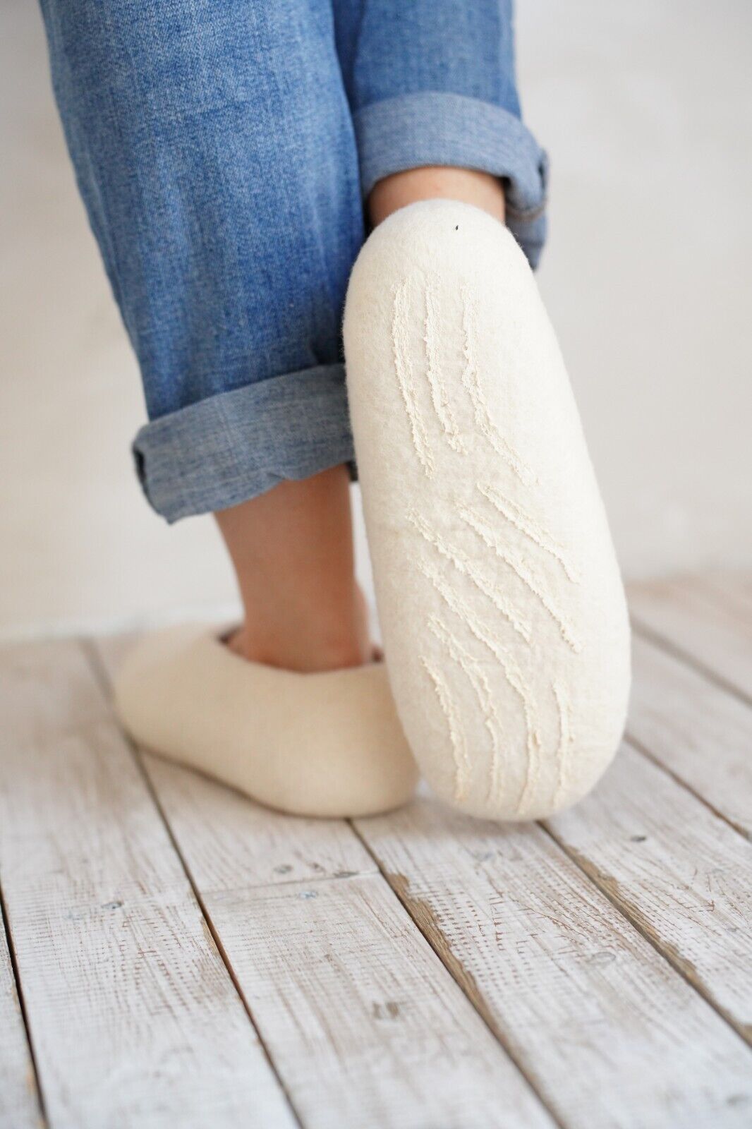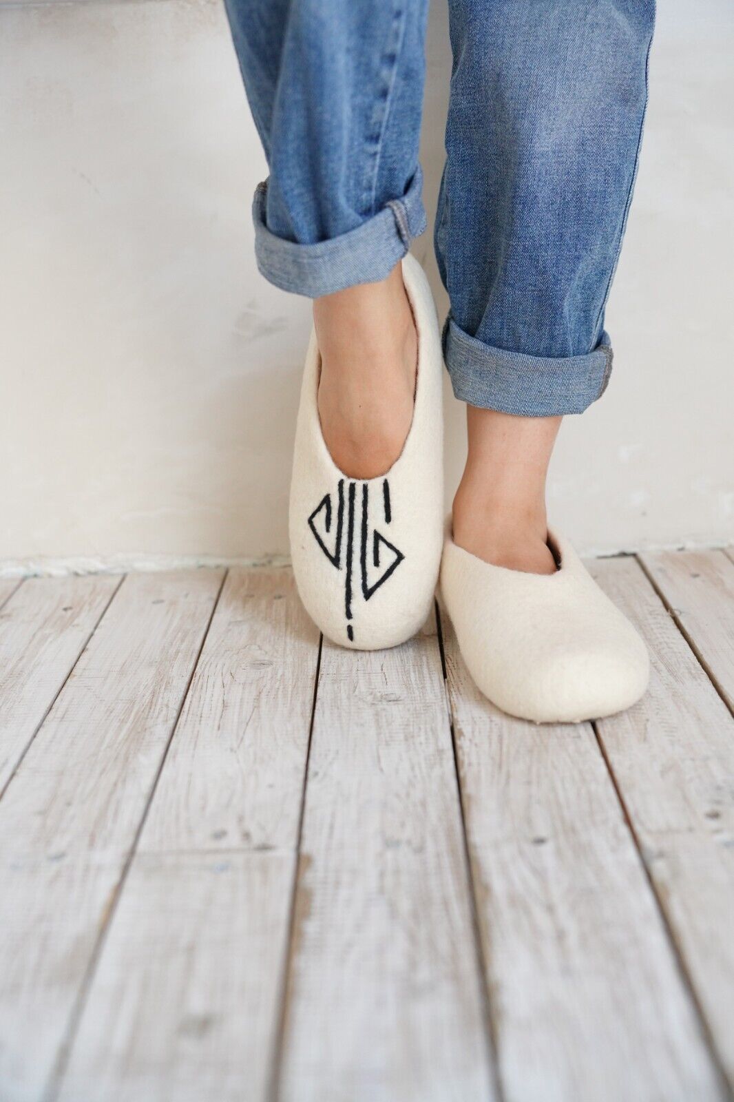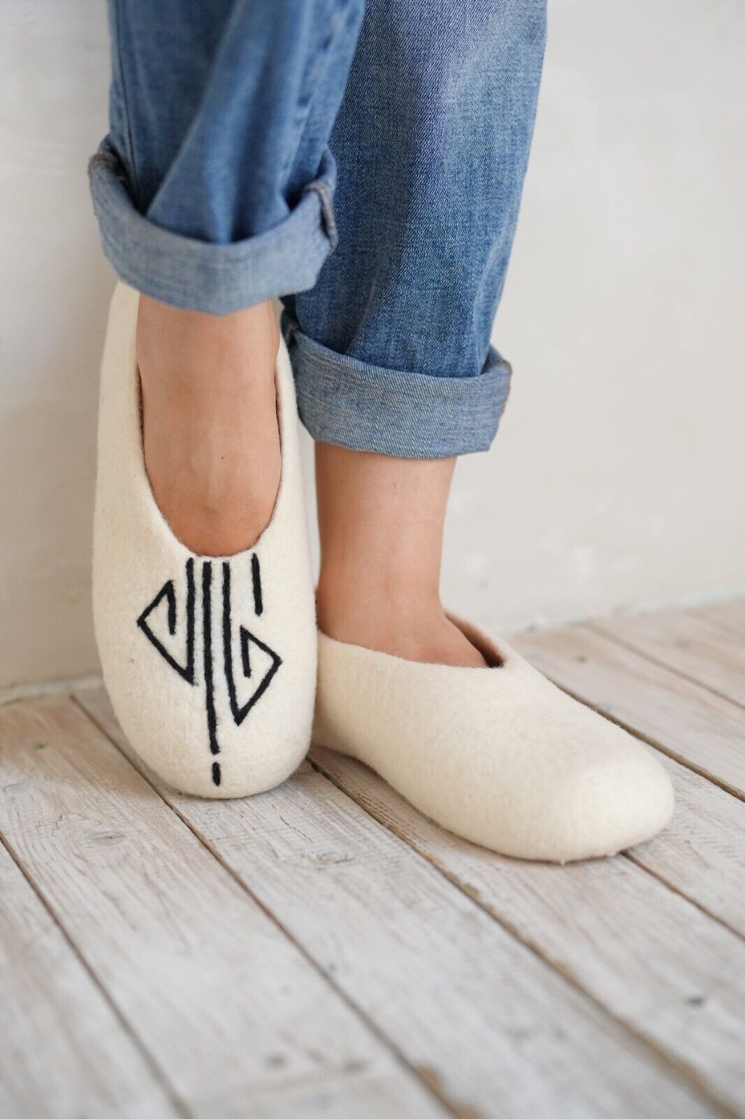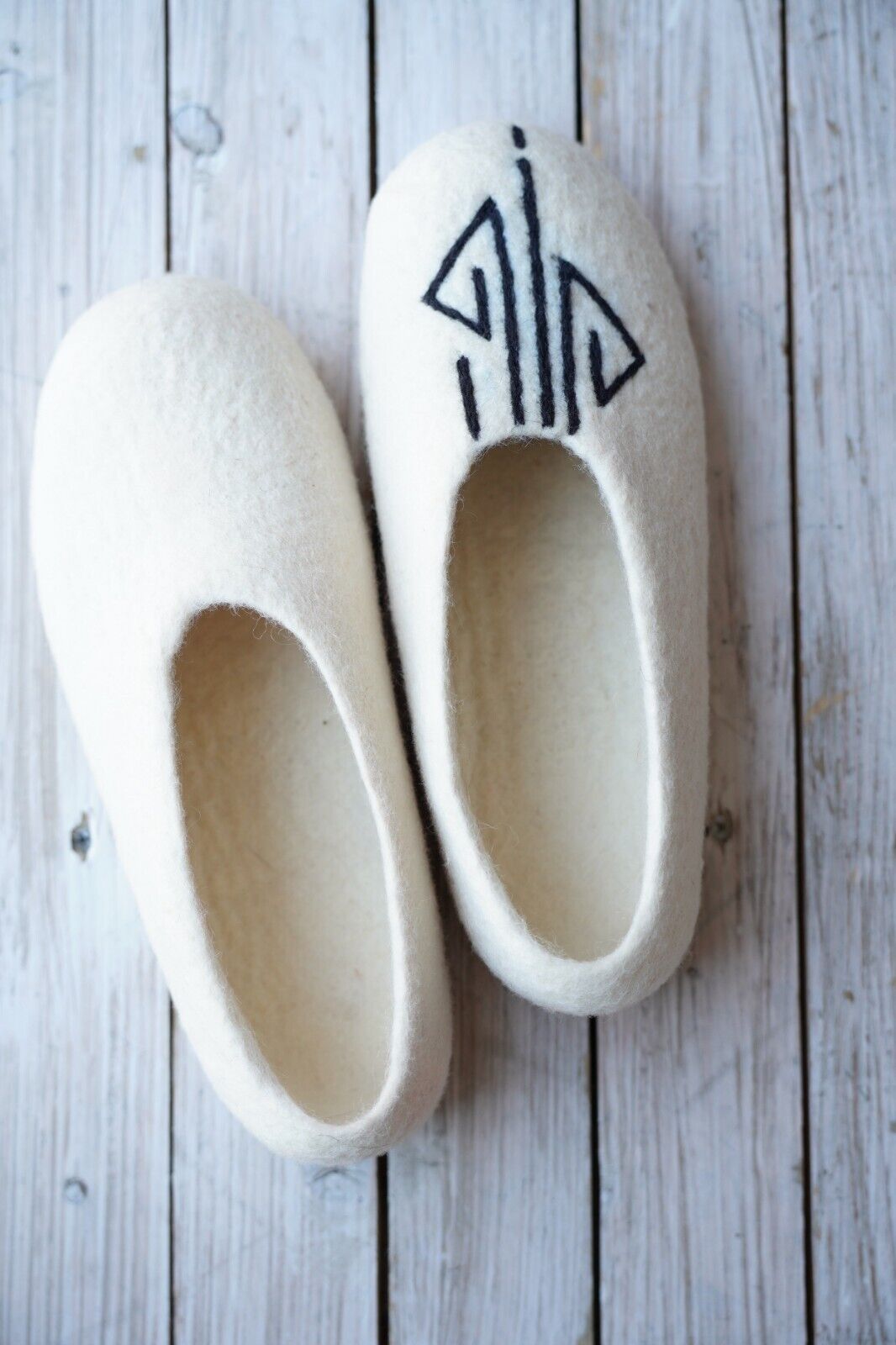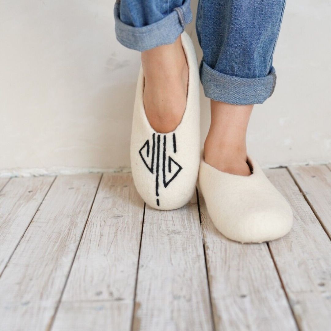 Embrace the warmth and softness of these exquisitely handmade merino wool felt slippers.