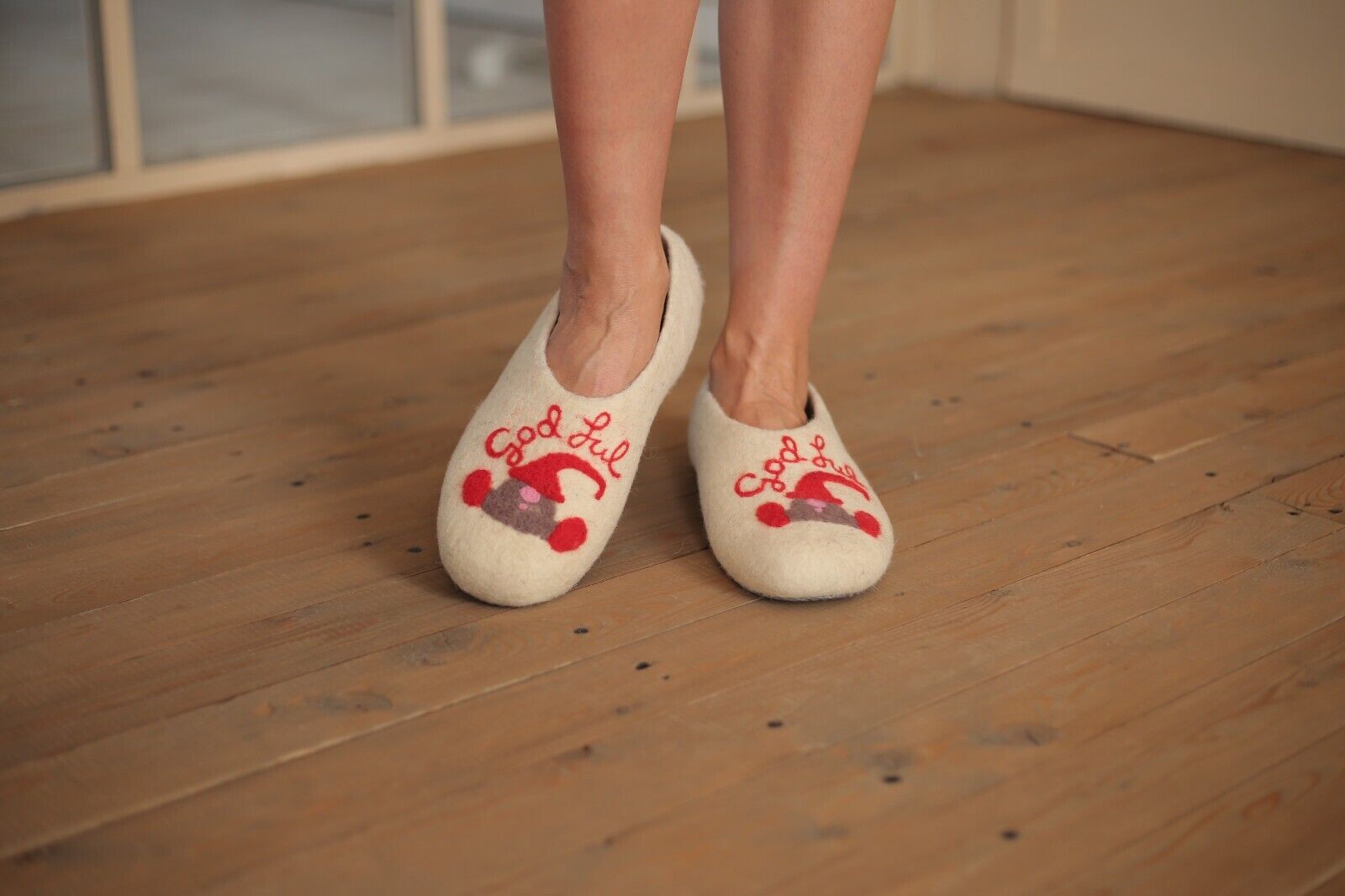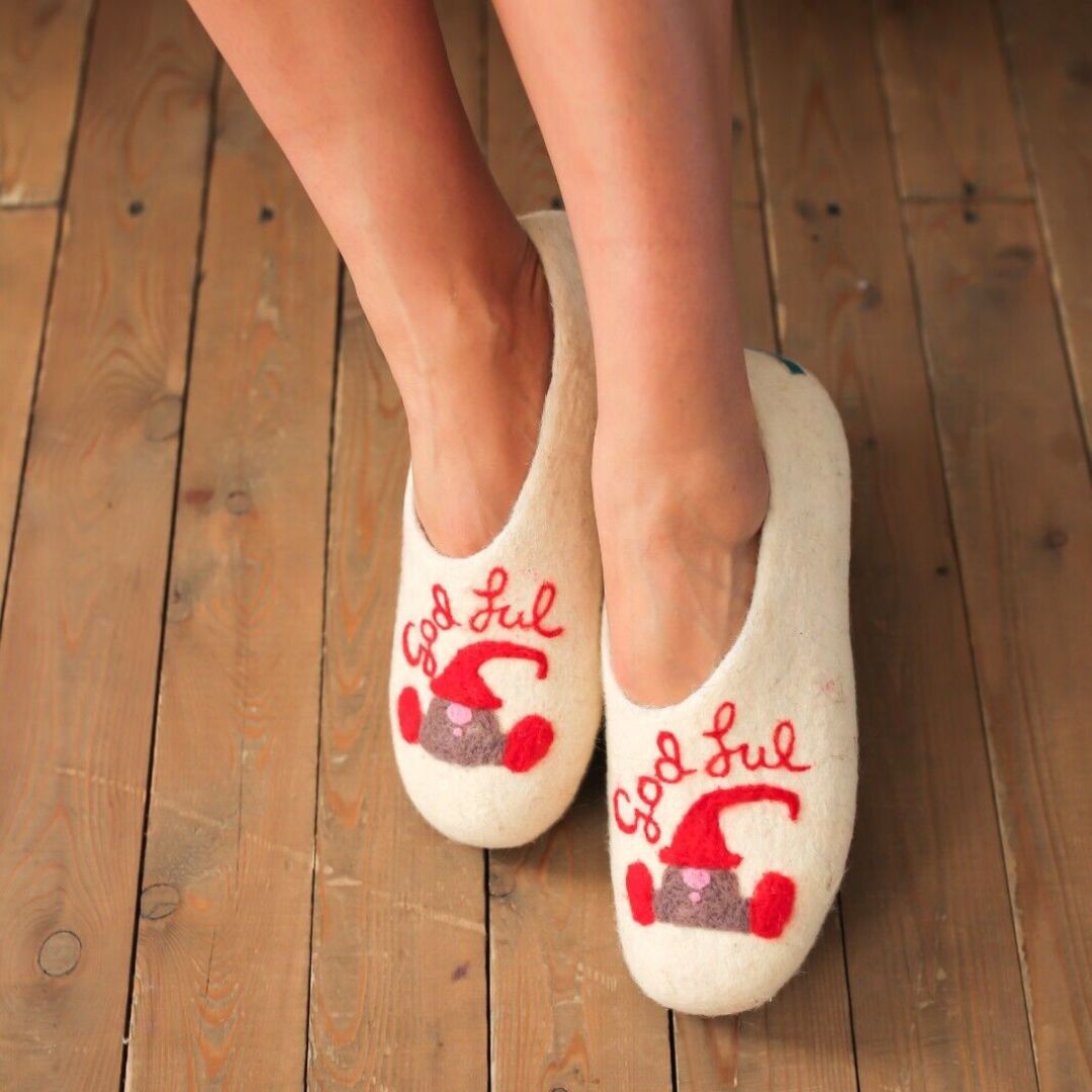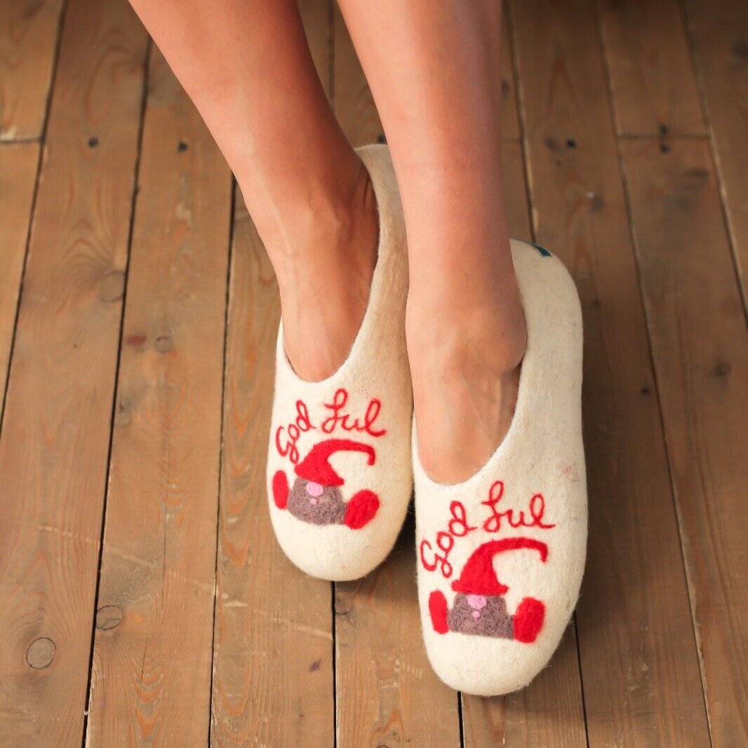Embrace the warmth and softness of these exquisitely handmade merino wool felt slippers.